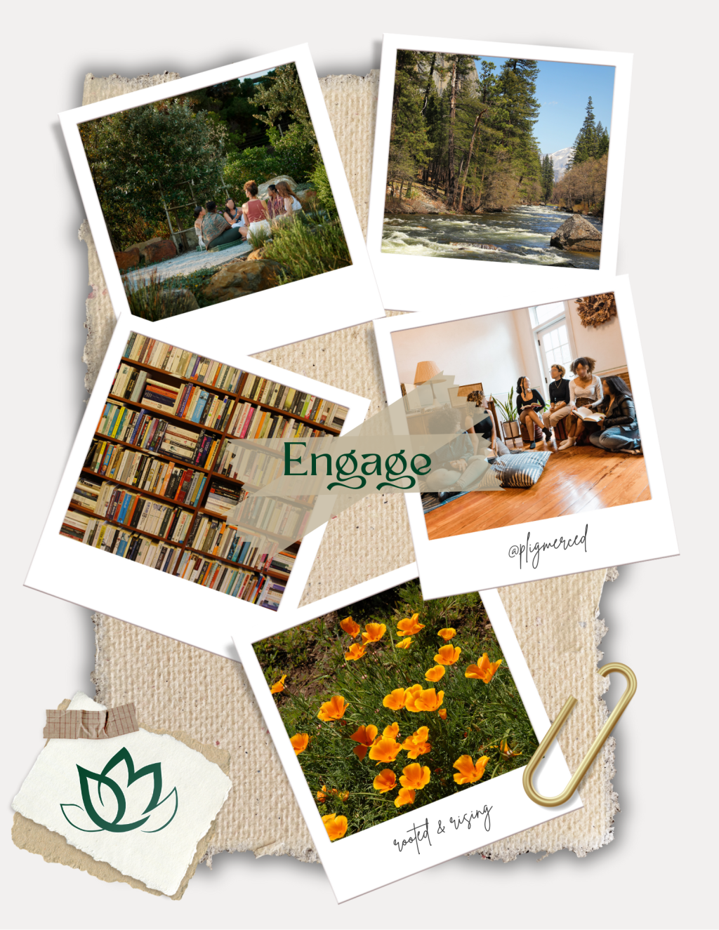 We’re so excited to have you here with us on our Engage page. Your curiosity fuels our energy for healing, cultural wellness, and systemic transformation. We invite you to check out our programs under the “Engage” tab above. If you’re looking to engage beyond what we’re currently offering, we’re down to discuss more ideas and dreams, too, and invite you to connect further with us by emailing at pligmerced@gmail.com.